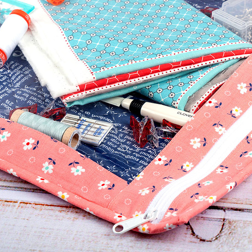 The video below, featuring Fat Quarter Shop’s Kimberly Jolly, takes you through the complete steps for creating the 16” x 18” zippered flat case. Make your own WIP Project Bag in about three hours, from the simple starting cuts to the final binding.