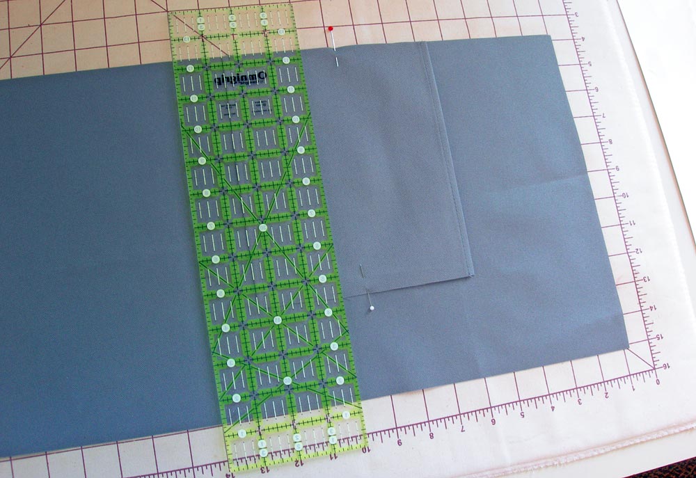 NOTE: If you selected the Rhino Canvas as we did, you’ll find it easy to fold and finger press. I did this first, and then used my iron, on a low heat, and a pressing cloth to set the hems. - Set your machine to a longer stitch length, I used 3.5, and stitch close to the fold on both hems on both pockets. Press.