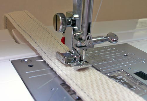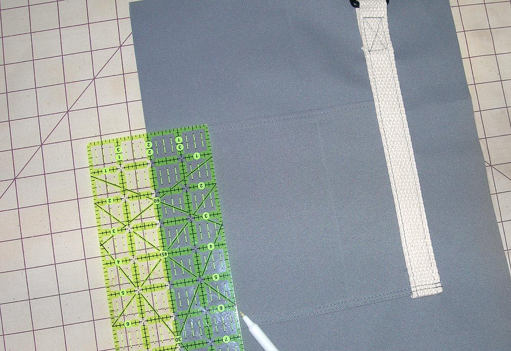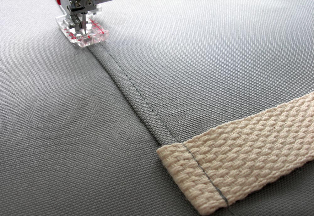- Take the extra time to make sure the strap is straight and parallel with both raw edges of the panel.
