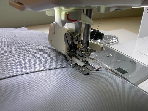 - Stitch a second seam 1/8″ below the first seam. I used my Janome Clear View Quilting Foot, which has really handy and clear markings for narrow seams.