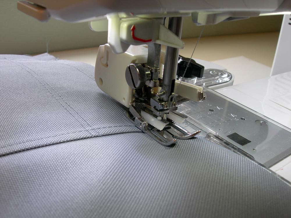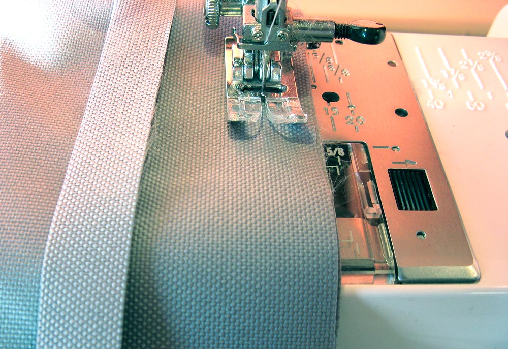 - Stitch the facing to the bag, using a ½” seam allowance. If you have a free arm on your machine, now is the time to use it.