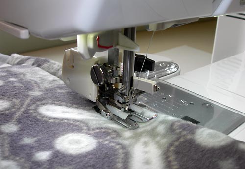 - Using a ½” seam allowance, stitch both side seams. You are stitching through four substantial layers that could have a tendency to slip and slide against one another. I used my Janome Walking Foot with its dual feed action to keep everything in line.