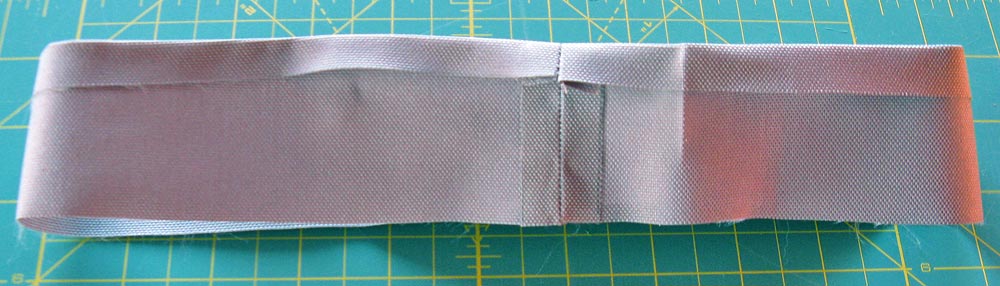 - Find the 2½” x 19″ strip. Bring the two ends right sides together and stitch a short ½” seam.
