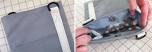 - Fold the facing back into place against the inside of the bag. Your clasps should be facing out.