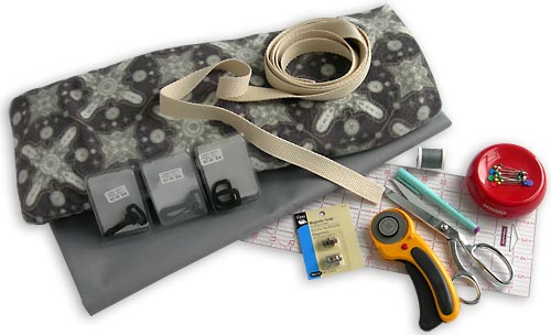 - ½ yard of 44-45″ or wider fabric for the the bag exterior; we used Rhino Canvas in Silver from Fabric.com, which is 60″ wide
