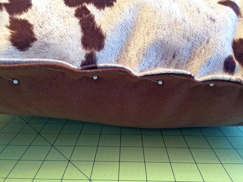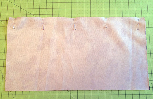 - Pin in place all around, leaving an approximate 8″ – 10″ opening along the bottom edge.