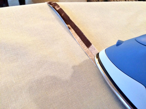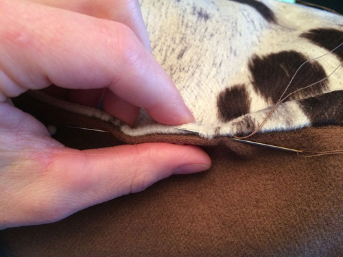 - Turn the cover right side out through the opening and press flat, turning in the raw edges of the opening used for turning so they are flush with the sewn seam. With these faux fabrics, adjust your iron to a lower heat and/or use a pressing cloth.