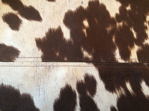 Rather than simple front and back squares, we put on our cowboy boots and kicked it up a notch. Both sides are made from two rectangles seamed down the center and highlighted to either side with bold topstitching. It’s the same kind of finishing detail you’d see on genuine leather accessories or upholstery.