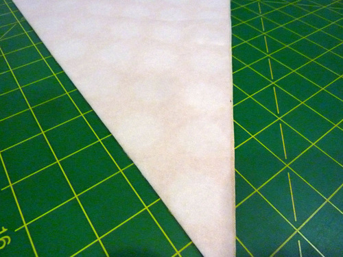 - Pin one cotton triangle right sides together with one faux fur triangle along the long inside edge of both triangles.