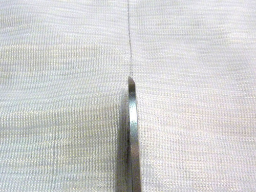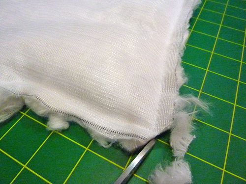 - Cut along the diagonal line, again snipping just through the backing so the nap of the faux fur remains intact.