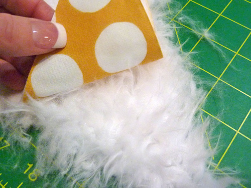 - Repeat to attach the remaining cotton and faux fur triangles.