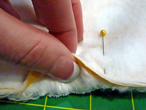 - As above, remember to push the nap of the faux fur in and away as you pin.