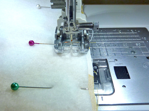- If possible, engage your machine’s built-in fabric feeding system or attach a Walking foot.