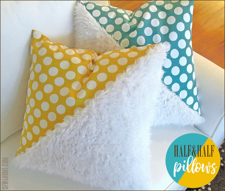 One half is cool cotton, the other half soft faux fur. When placed side-by-side and back-to-back, you get a pillow with plenty of personality. Mixing textures like this is a fun way to create a unique look. We dare you not to smile at these happy polka dots. So fast and easy, these pillows can stitch together in under an hour.