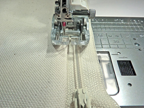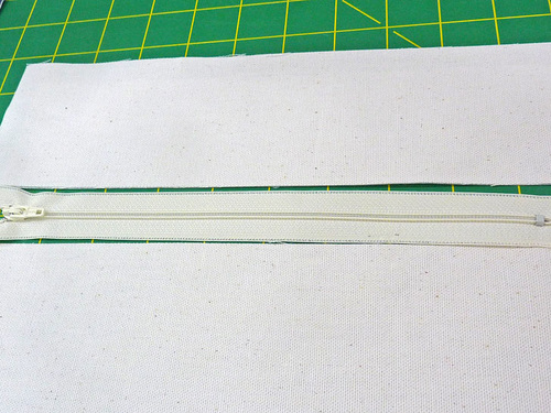 - Press the fabric up and away from the zipper. Edgestitch along the zipper through all the layers.