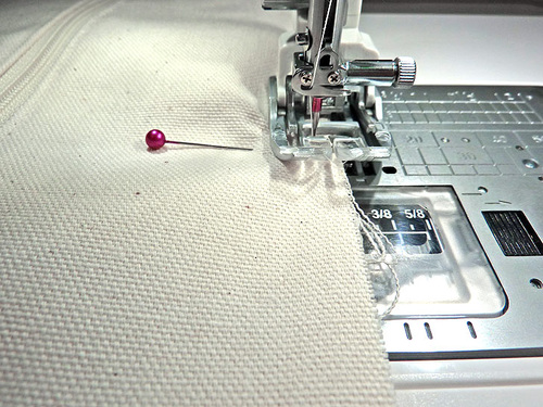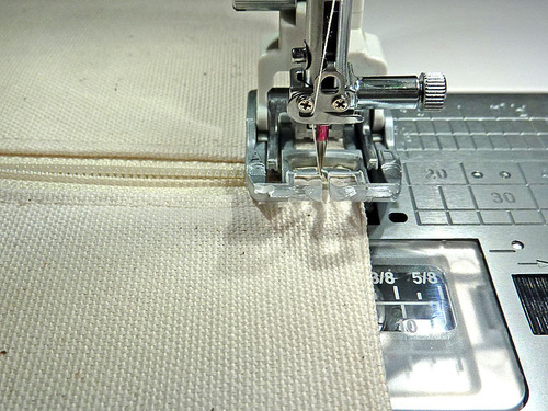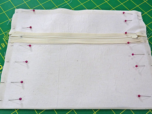 - Using a ½” seam allowance, stitch the sides, being careful as you pass the zipper stops at either end.