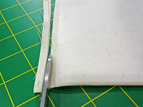 - Stitch this raw end in place. We opted for a zig zag stitch to minimize fraying, and since our bag has a casual feel we weren’t concerned with the zig zag showing. You could also turn under this raw end about ¼” and use a straight stitch to secure.