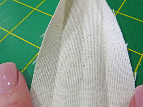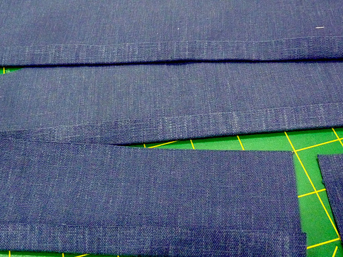 - Stitch these pieces into a loop as you did with the other set, but remember to unfold that ½” hem so you stitch the full side seam top to bottom. Re-fold and re-press when the seaming is done and press open the seam allowances.