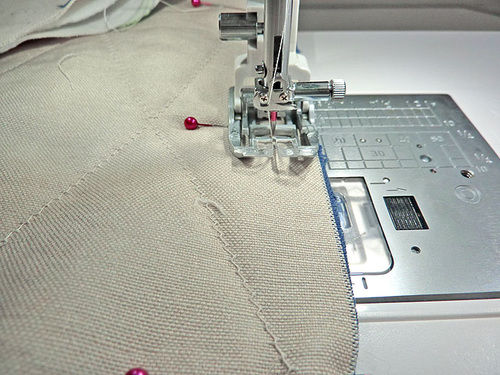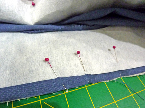 - Turn right side out, and press flat. Edgestitch along each edge. We used the contrasting thread in order to match all the other topstitching.