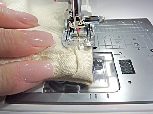 - Using a ¼” seam allowance, stitch across. You can use a Zipper foot if you have trouble getting in close enough. We used our AcuFeed™ Flex foot with the needle set all the way to the left.