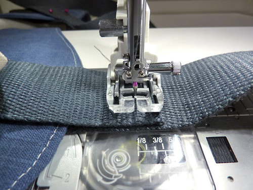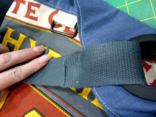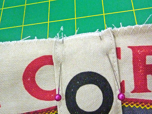 - Be careful about your placement; these are not simply centered over the side seams as you might traditionally do. Because of the size of the bag, it’s best if the loops are slightly off-set to distribute the weight evenly. Place one tab in line with and to the front of the side seam and the opposite tab in line with and to the back of the opposite side seam.