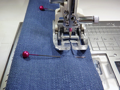- Pin along both long sides. Using a ¼” seam allowance, stitch both sides.