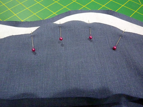 - Pin the two accent loops right sides together. Be especially careful to perfectly align the upper curves.