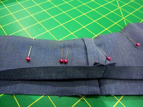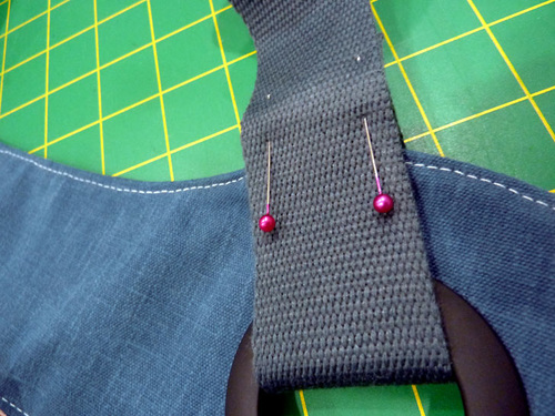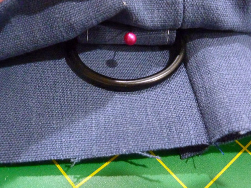 - Pin the raw ends of the D-Ring tabs in place and set aside.