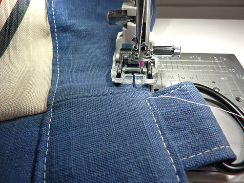 - Re-set the presser foot to edgestitch around the top of the bag in the same manner. For the best look, start and stop your stitching at a side seam.
