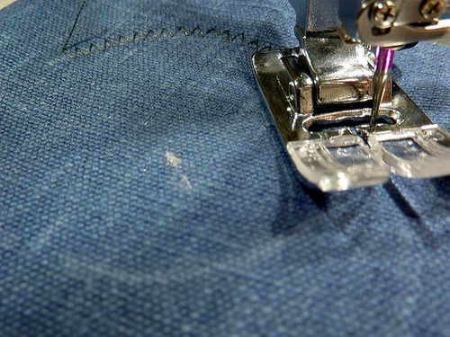 - Re-thread the machine with thread to best match the Belting in the top and bobbin. Set for a zig zag stitch.