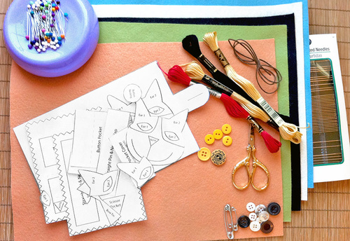 This project is completely hand stitched. You could use a machine, but it would lose its handcrafted appeal. The chunky stitching in matching and contrasting colors is what makes the kit such a sweet little treat. If you’re new to hand stitching, we have a full tutorial you can review prior to starting: Hand Sewing Basics: Tips, Tools & Techniques.