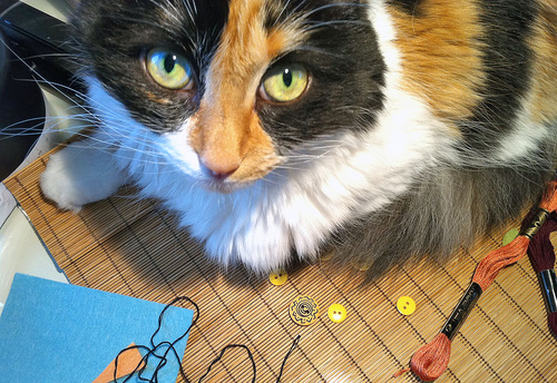 Speaking of Mr. Sewing Kitty. He has another job besides just looking cute. You can use his lightly-stuffed kitty face as a pincushion.