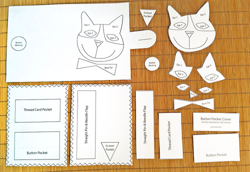We offer a full set of downloadable patterns so you can build all the organizational pockets and panels as well as the friendly puddy tat on the front cover.
