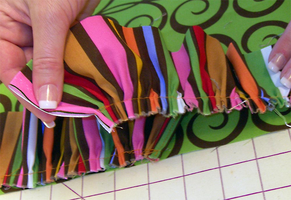 NOTE: We used the rule of thumb that says your ruffle needs to be approximately 2½ times the length of the edge to which you’re applying the ruffle. If you are new to this technique, you can check out our tutorial: Gathering & Ruffles Made Easy .