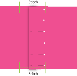 - Working as close to the edge as possible, stitch the sides of hems together to secure and create one piece. It’s easier to work with one piece to stitch front to back.