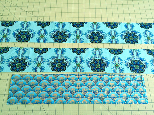 ONE 10½” high x 31″ wide rectangle to best feature the pattern. You want the fabric’s motif to be centered nicely both side to side as well as top to bottom within the pocket panel for a pretty reveal.