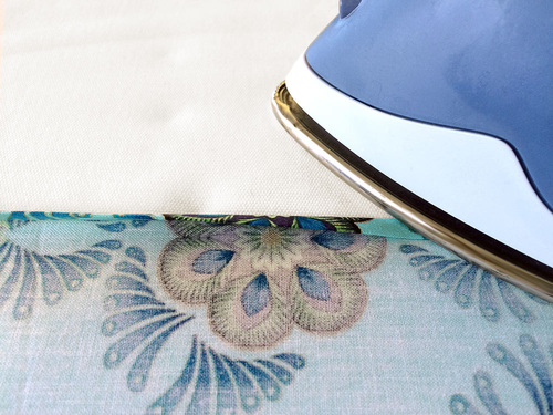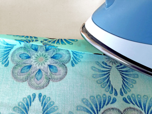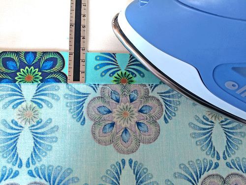 - Along the top of the pocket panel, use the same technique to create a 1″ double turn hem. Instead of ¼”, simply fold and press 1”.