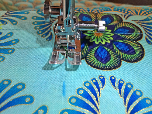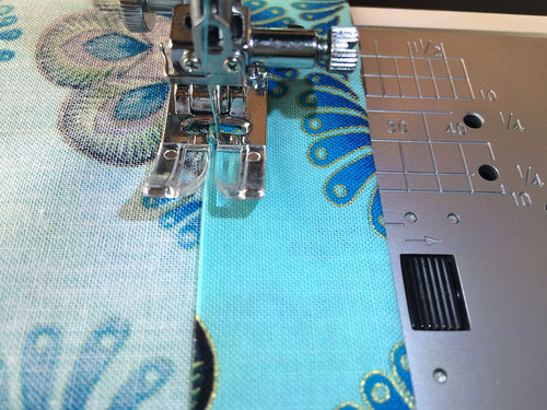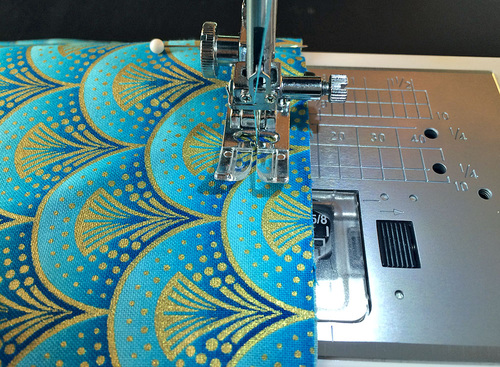 - Using a ½” seam allowance, stitch the layers together.