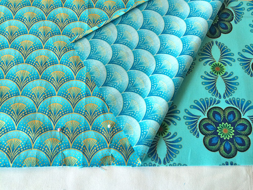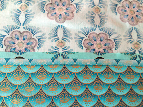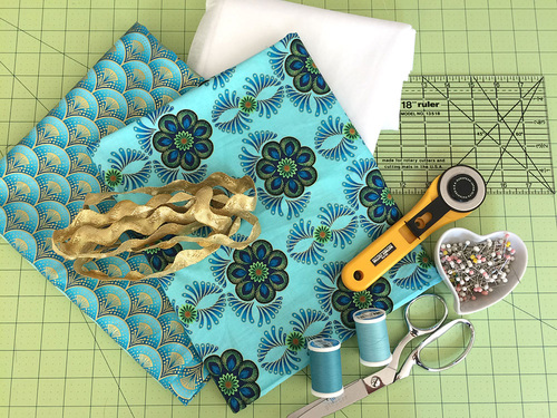 - ⅝ yard of 44+ wide quilting weight cotton for the pocket panel; we originally used Feather Medallion in Mint from the Rhapsody in Blue collection by Maria Malinowski for Kanvas Fabrics