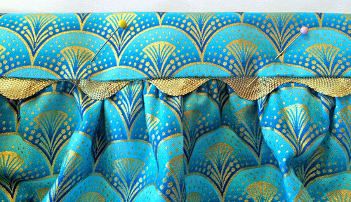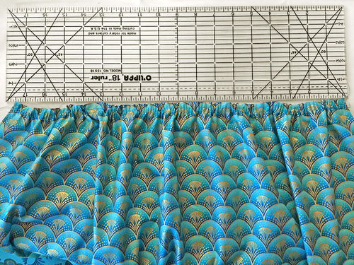 - Pull the stitches to gather the top of the apron from 31″ down to 18″.