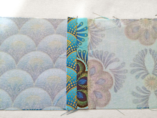 - Stitch both short seams, using a ½” seam allowance. Press the seams open. You now have one continuous strip 4″ x 79”.