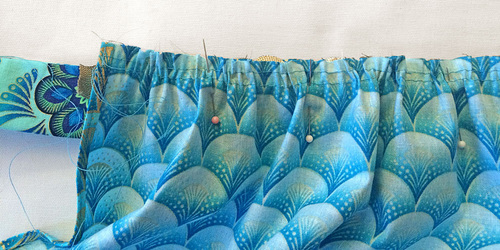 - Pin in place. Do not stitch the side hems at this time.