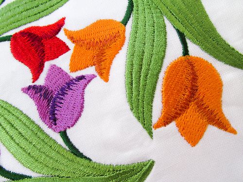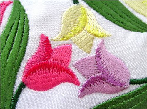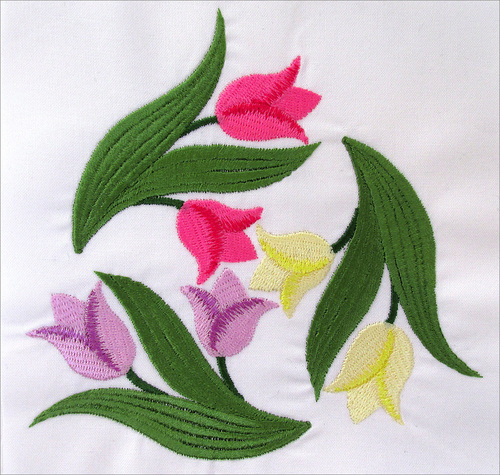 - As listed above, click HERE to download the Tulip Garden Embroidery Collection in the format for your machine embroidery model. You should also download the Color Chart and the template for the tulip arrangement. Both of these are .pdf files.