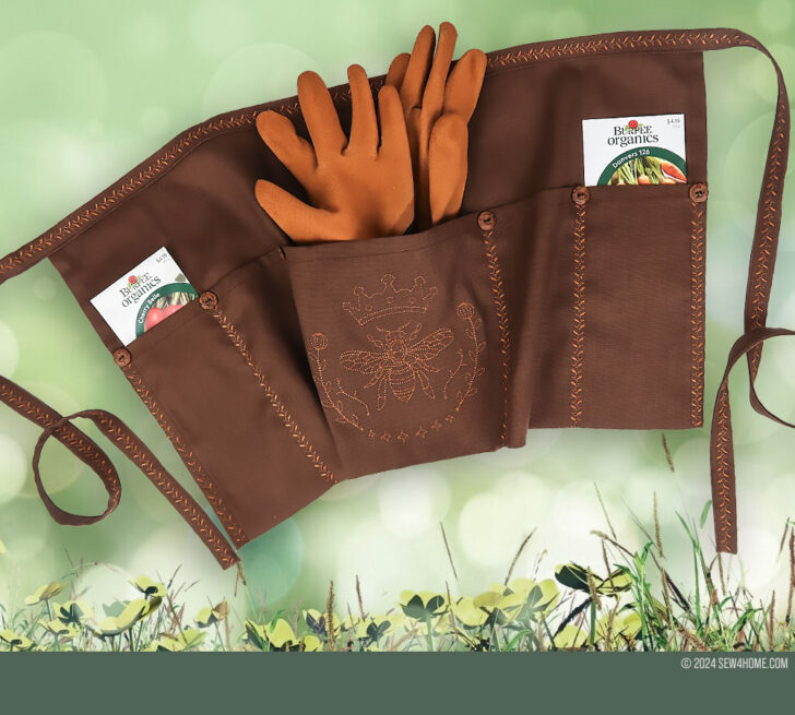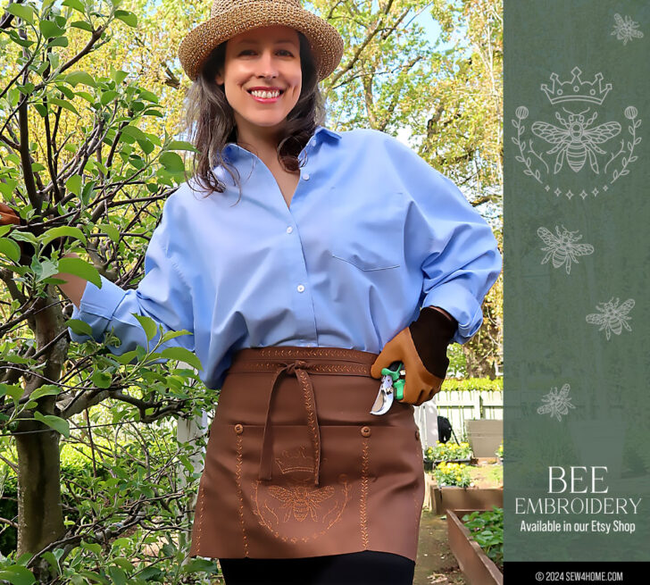 S4H loves to add a little embellishment when possible, and since we used a solid color base fabric, a bit of machine embroidery and decorative stitching was just the thing. The Queen Bee embroidery is a S4H Custom Design, available for purchase in our S4H Etsy Shop. Click here for details. You could, of course, use another embroidery design of your choice, an appliqué or forgo the option altogether and keep your pockets plain.