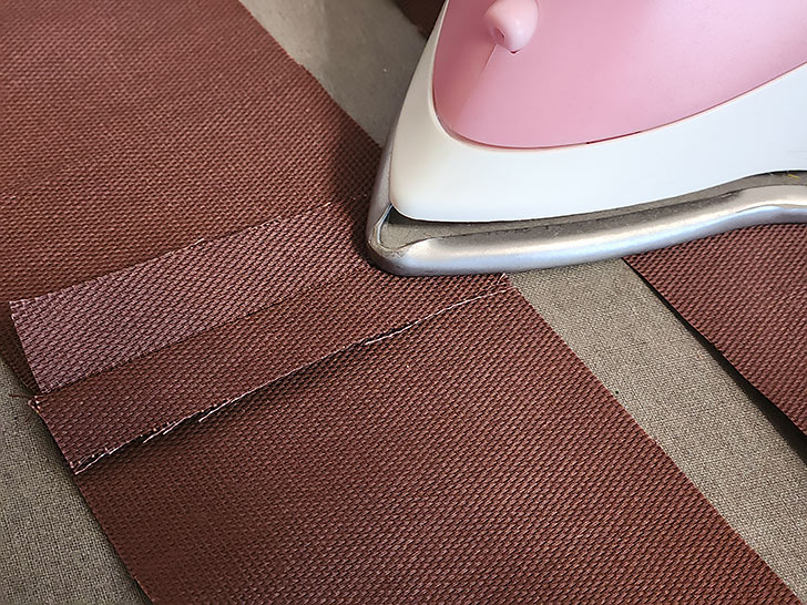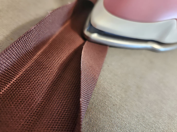 - Along the length of the strip, fold in the raw edges so they meet in the middle. The layers should be wrong sides together.