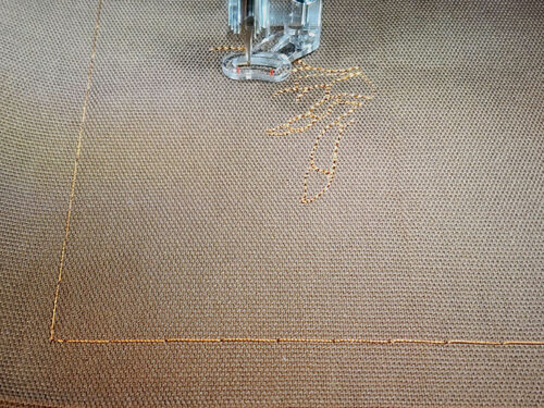 - Along each side edge, machine baste the layers to insure there will be no shifting of the pocket.