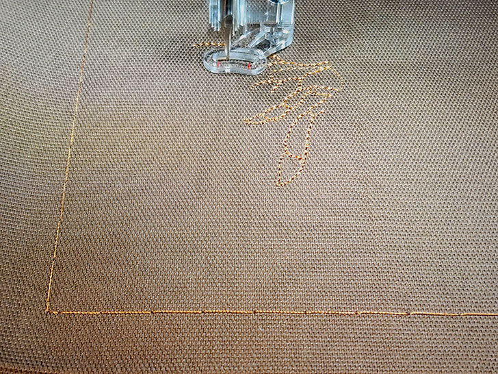 - The machine should still be threaded with matching thread in the top and bobbin.