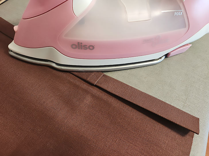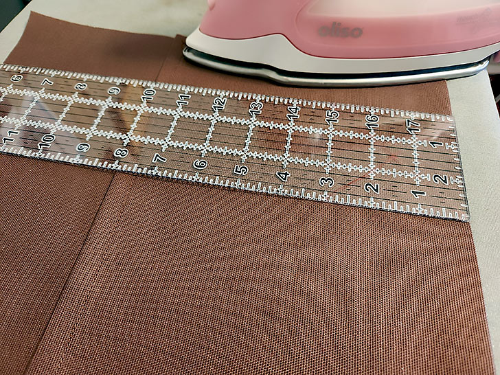 - Fold up the hemmed bottom edge 8” – it should measure 8” from the bottom of the fold to the top of the hem. Press well to set a visible crease line.