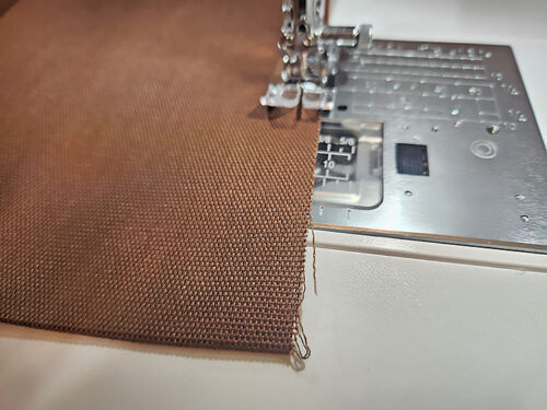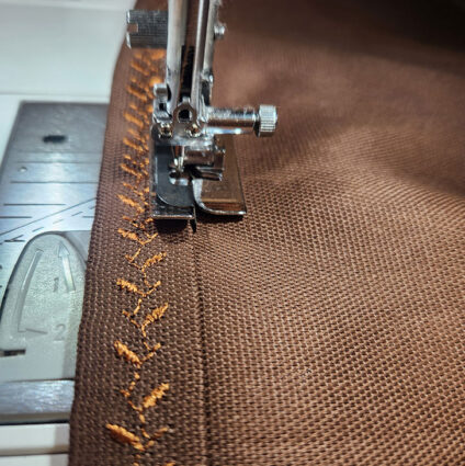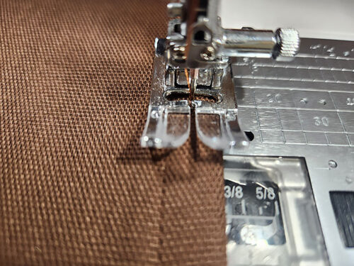 - We also moved our needle position to the left (to 1.0), which allowed us to use the Blind Hem foot’s center flange to become the perfect guide.