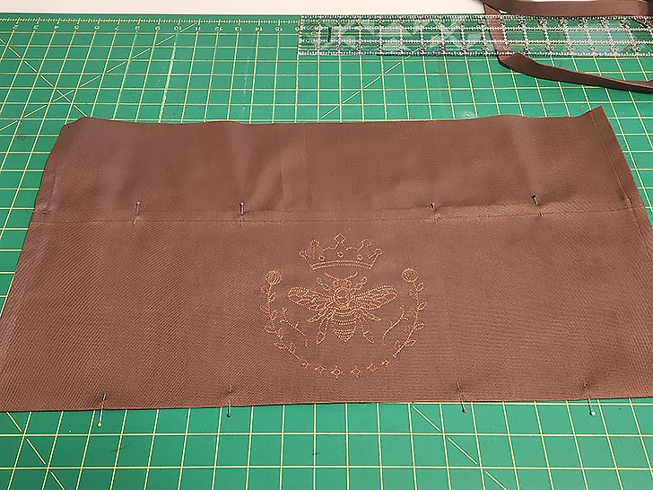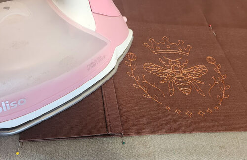 - With your pocket embellishment complete, re-fold the pocket up into position – 8” in depth from the bottom fold to the top of the hem. Press well.